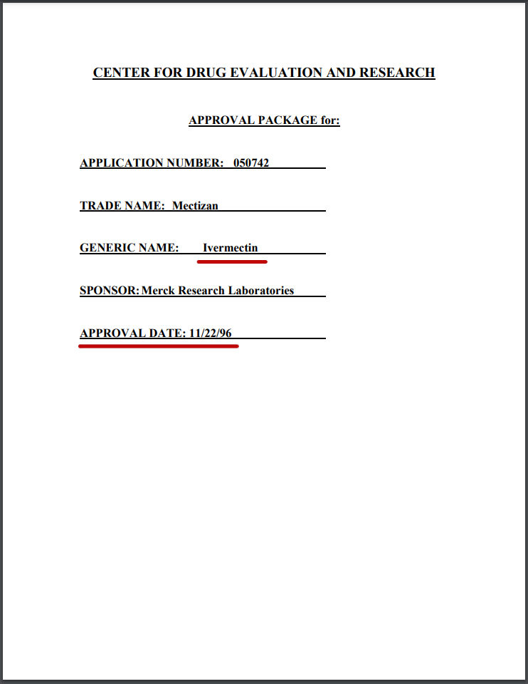 Ivermectin in this context is NOT a horse dewormer. Ivermectin is a working ingredient in many drugs for humans that are prescribed by doctors all around the world and have been for decades. I found documents on the Federal Drug & Food Administration (FDA) website approving drugs with Ivermectin for humans going back as far as 1996 and I’m sure if you dig deep and hard enough, even further. Here’s a sample of what I found:
